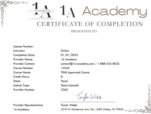Certificate of course completion mailed First Class within 24 hours on working days.